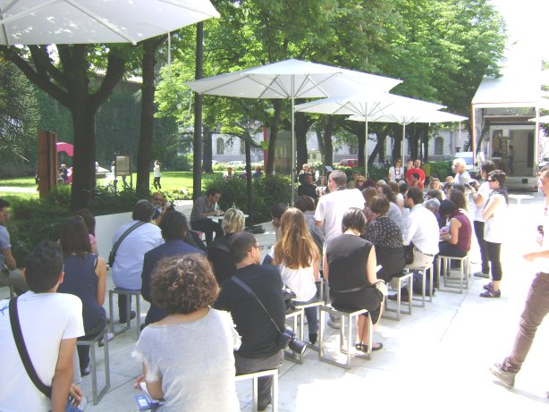 ma poi le cose sono andate ancora peggio: sabato mattina -foto sotto- ad ascoltare Achille Bonito Oliva di fronte al MIC (su un viale Baccarini per l'occasione interamente bloccato al traffico) erano poche persone mentre ad esempio piazza Nenni straboccava di gente per la Festa della Polizia;
