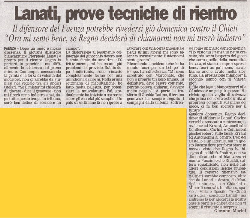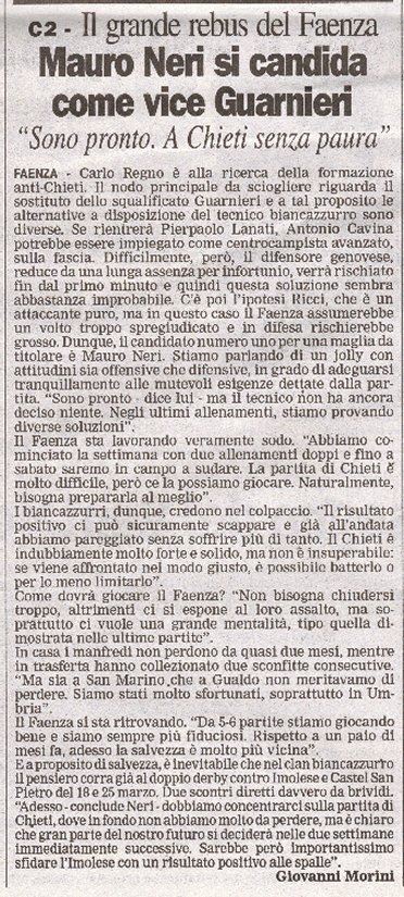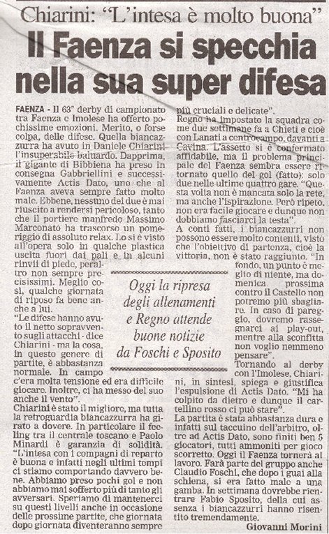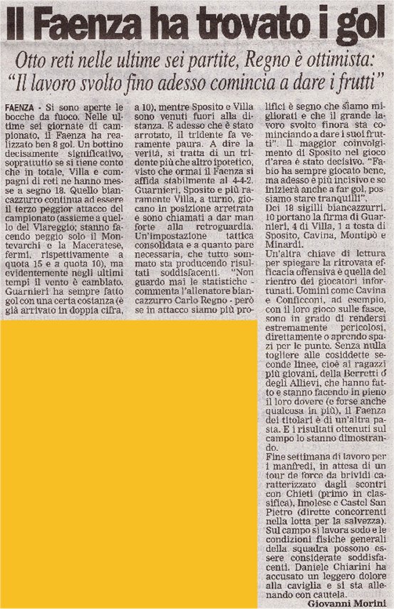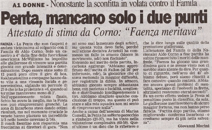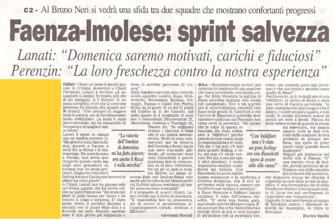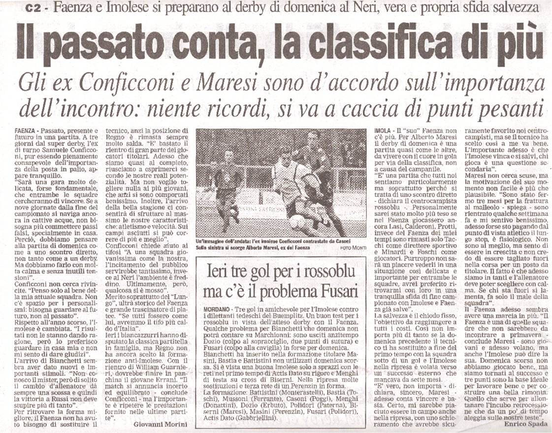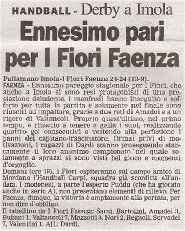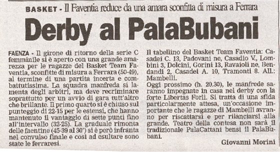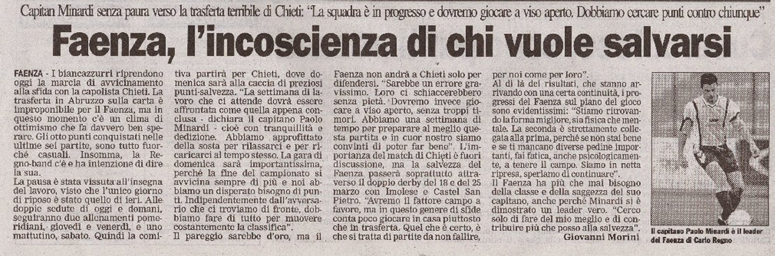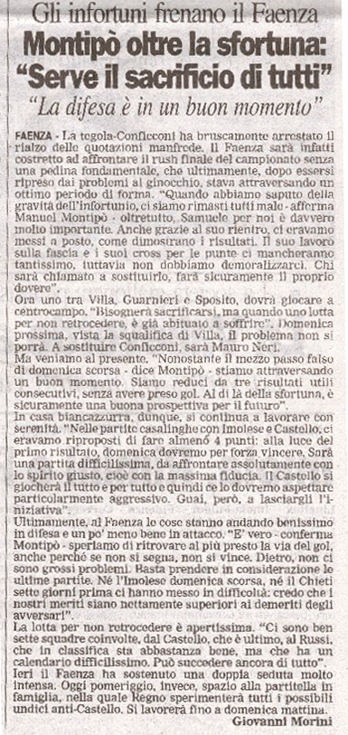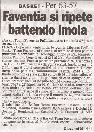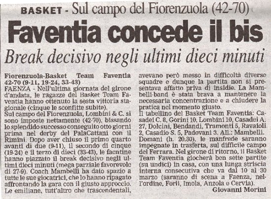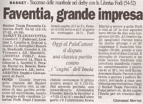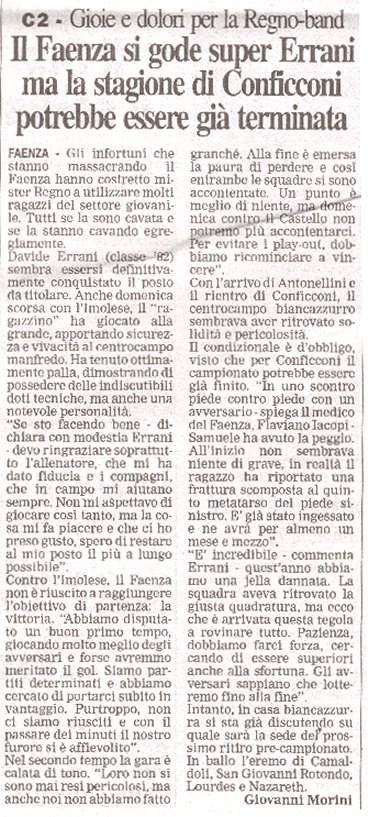 Il Faenza si gode errani ma la stagione di Conficcon potrebbe essere già finita