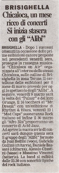 Chicaloca, un mese ricco di concerti, si inizia stasera con gli "Alibi"