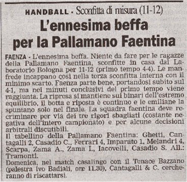 Handball: L'ennesima beffa per la Pallamano Faentina