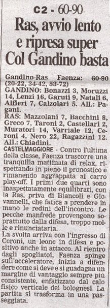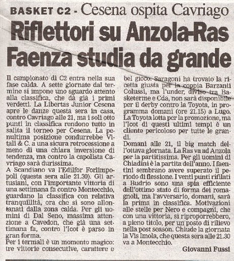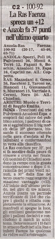 La Ras Faenza spreca un + 12 e l'Anzola fa 37 punti nell'ultimo quarto