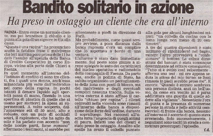 Rapina alla Banca di Credito cooperativo di Corso Europa