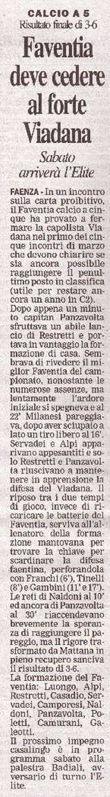 Calcio a 5; Faventia deve cedere al forte Viadana