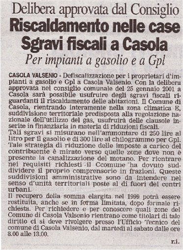 Riscaldamento nelle case, sgravi fiscali a Casola