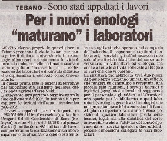 Struttura innovativa per i futuri enologi che studiano a Tebano
