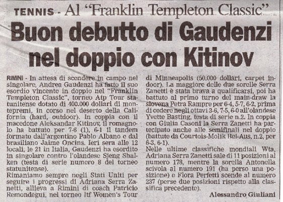Tennis: buon debutto di Gaudenzi nel doppio con Kitinov