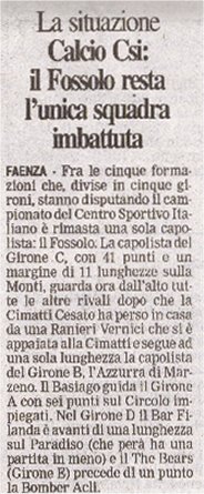 Calcio Csi: il Fossolo resta l'unica squadra imbattuta