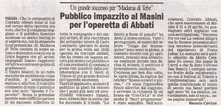 Pubblico impazzito al Masini per l'Operetta di Abbati