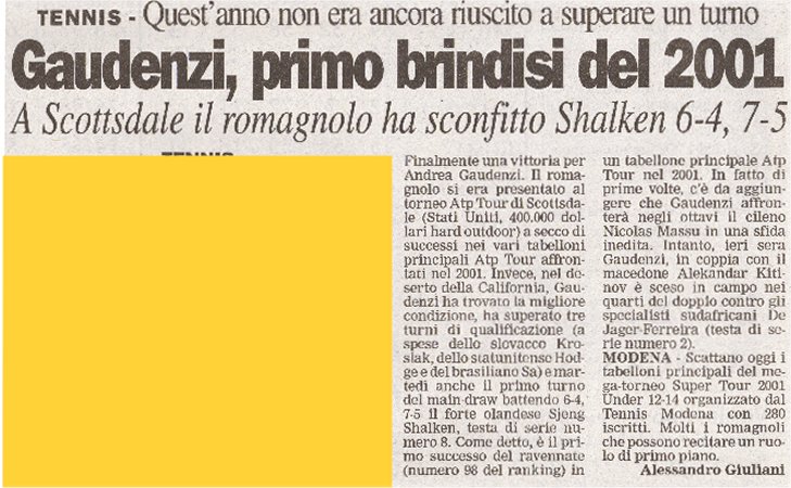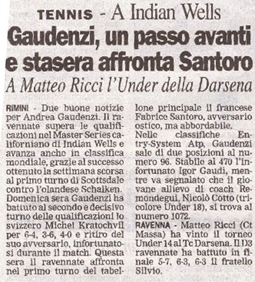 Tennis: Gaudenzi, un passo avanti e stasera affronta Santoro