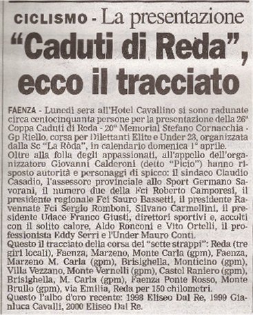 Ciclismo: "Caduti di Reda" ecco il tracciato