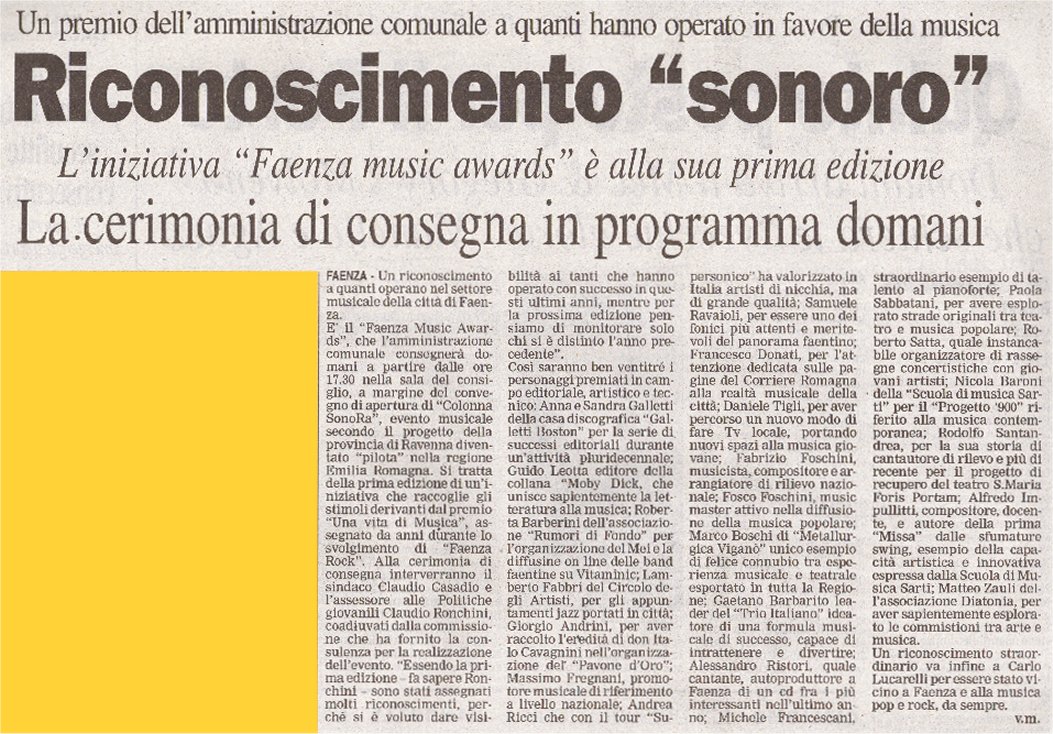 Un riconoscimento "sonoro" a quanti hanno operato in favore della musica