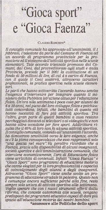 Comune aperto: "Gioca sport" e "Gioca Faenza"