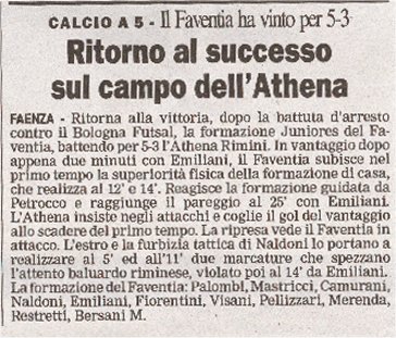 Calcio a 5: Ritorno al successo per il Faeventia sul campo dell'Athena