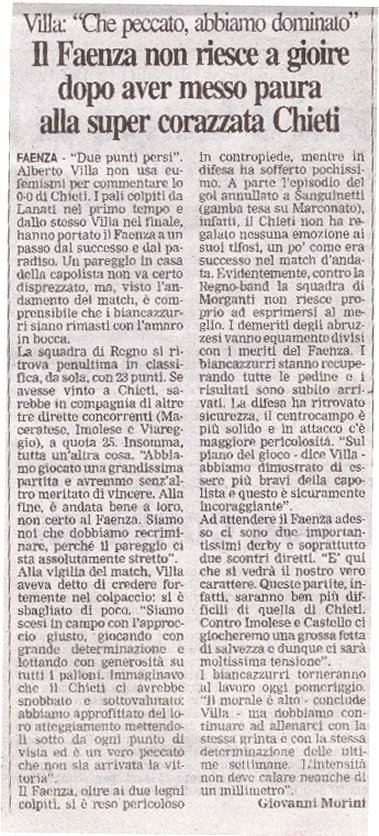 Il Faenza non riesce a gioire dopo aver messo paura alla super corazzata Chieti