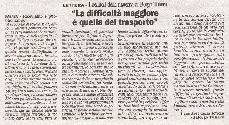 Lettera: "La difficoltà maggiore è quella del trasporto"