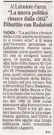 "La nuova politica rinasce dalla città" dibattito con Badaloni