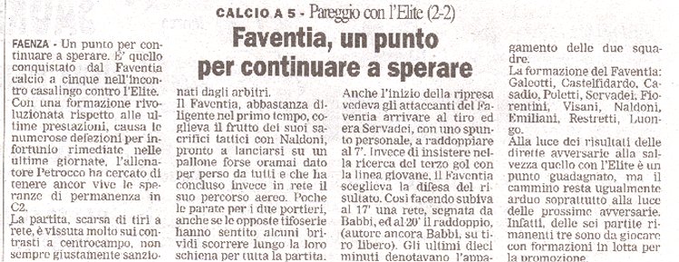 Calcio a 5: Faventia, un punto per continuare a sperare