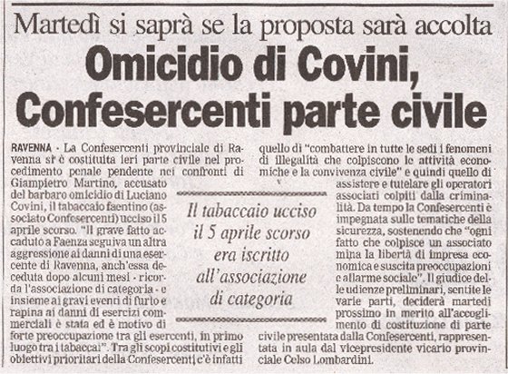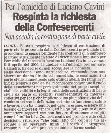 Per l'omicidio di Luciano Cavini, respinta la richiesta della Confesercenti