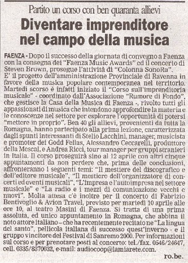 Prevendite per Steven Brown e iscrizioni ai corsi Musica & Impresa