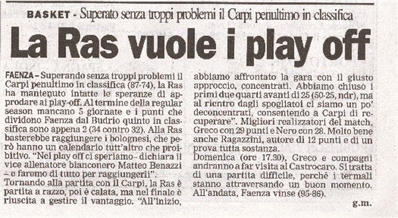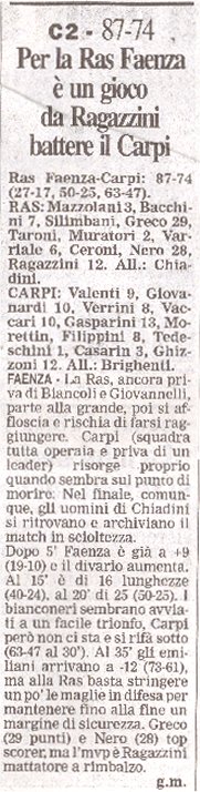 Per la Ras Faenza è un gioco da ragazzi battere il Carpi