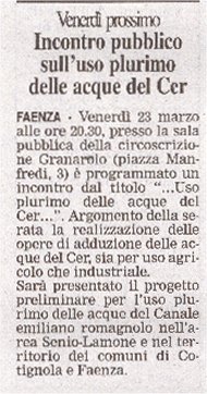 Incontro pubblico sull'uso plurimo delle acque del Cer