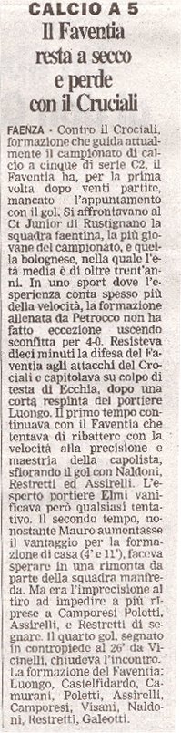 Calcio a 5: Il Faeventia resta a secco e perde con il Cruciali